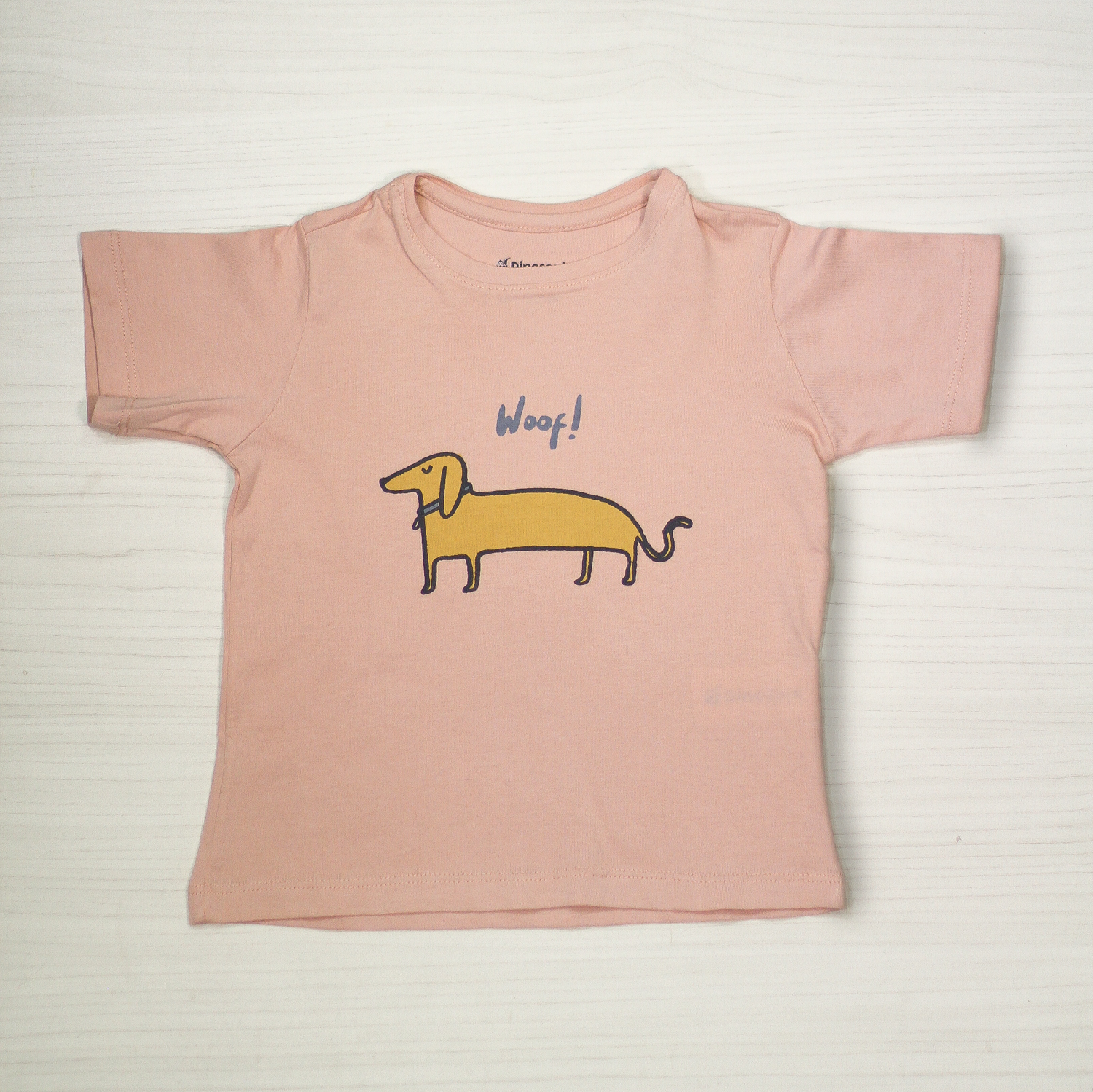 Camiseta manga corta con estampado de perro salchicha para bebé (18 meses – 4 años). Camiseta en tejido de punto 100% algodón suave que brinda frescura y comodidad para el bebé, cuello redondo y marquilla estampada para una comodidad absoluta.